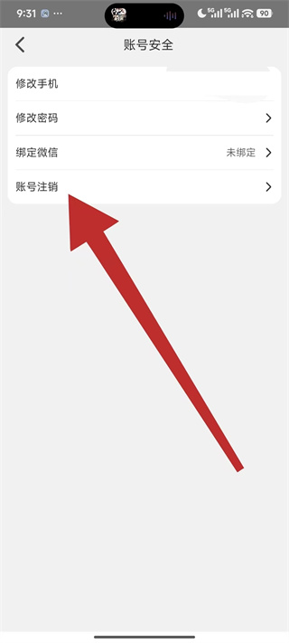 4、在账户安全界面,点击账号注销,进入账号注销页面。