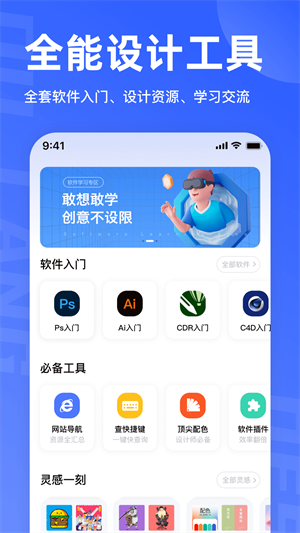 - 提供超多软件入门学习,包含了PS、AI、SDR、C4D等软件,自由选择来学习;