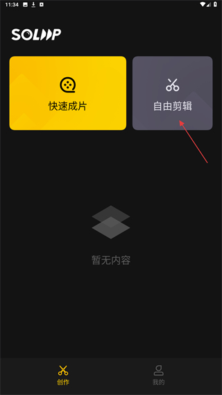 1、启动即录剪辑的应用,在创作页面点击自由剪辑的选项,进入素材选择界面。