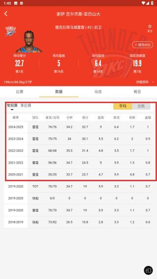 3、在数据页面内,可查看每个球员大致的数据内容,点击你想看的球员名称即可。