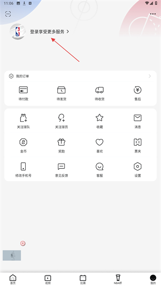 2、在个人中心页面,点击登录享受更多服务区域,弹出NBAID的登录弹窗。
