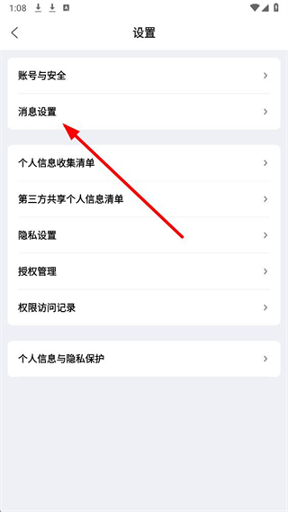 3、在设置页面里,找到消息设置选项并点击,进入具体的消息配置界面。
