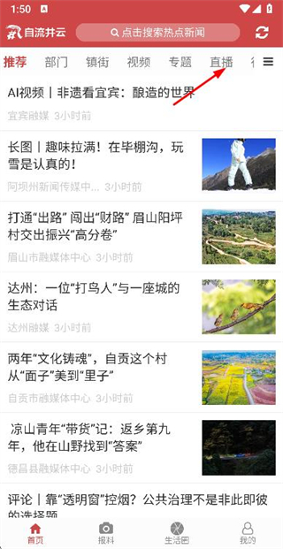 1、在首页点击顶部的直播选项,进入直播内容列表页面。