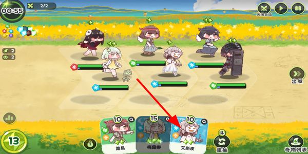 2、在战斗准备界面抽取卡牌,选择对应角色卡布置阵容,也可升级卡牌星级,提升角色战力。