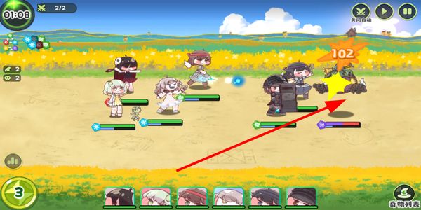 3、战斗过程中,己方角色自动攻击敌方目标,造成伤害并压制对手,推进战斗节奏。