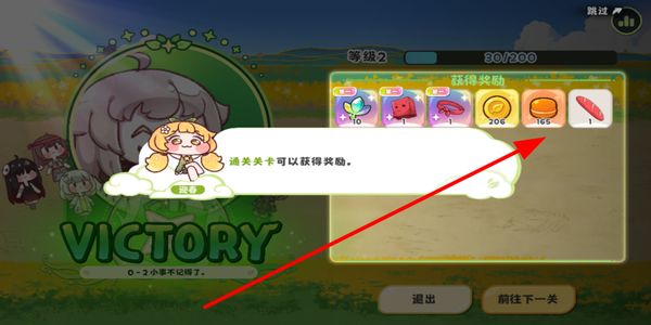 4、通关关卡后获取对应的奖励道具,查看奖励内容,选择前往下一关继续游戏进程。