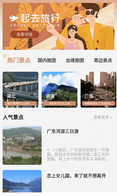 旅行计划app是可以协助安排行程的一款软件,有非常多的用户进行旅行,可以直接搜索自己想要去的旅行地点,就可以查看到每个想要去的地方,还有每个去过的用户拍出的照片,也可以共同感受当地的风情风俗,还可以参考其他用户当时做的一个攻略,节省自己的时间,非常方便,每天软件上还会推荐更多的热门景点,各种旅游情况都表达的非常清楚,可以直接选择时间出门。