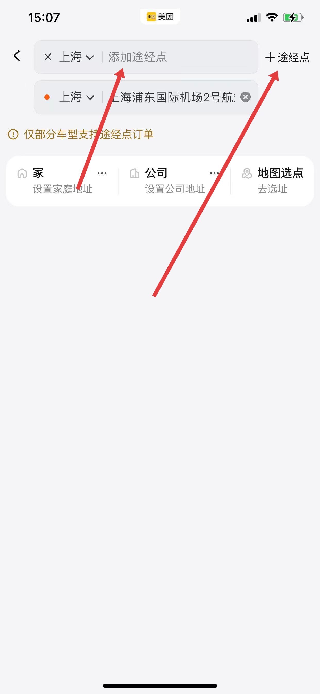 美团打车怎么设置途经点