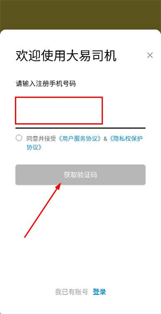 2、在注册账号页面填写手机号码后,点击获取验证码。
