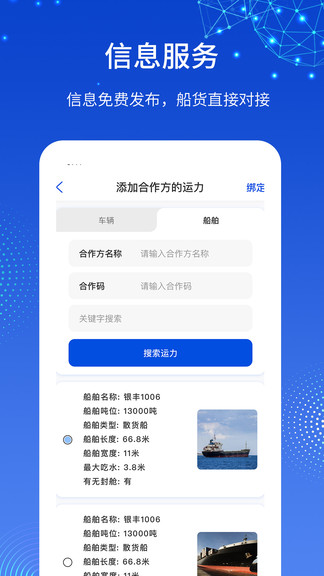 1、在软件中可以通过输入第三方提供的合作码进行运力的绑定;