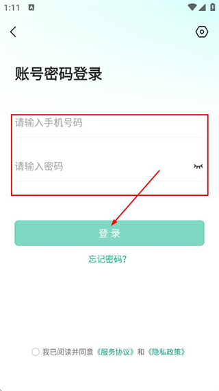 3、在账号密码登录页面,填写手机号码、密码,点击登录,完成账号登录。