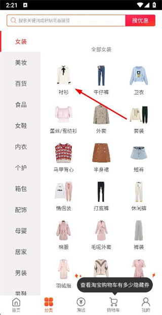 2、在分类页面点击目标品类,进入该品类的商品列表页面。