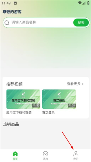 1、在华大康成首页,点击底部我的选项进入个人中心页面。
