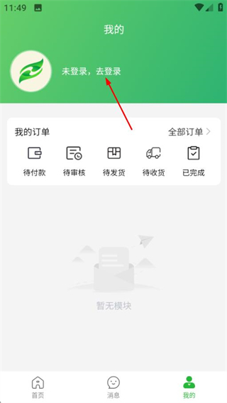 2、在个人中心页面,点击未登录,去登录按钮进入登录界面。