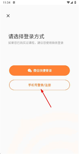 1、在登录方式选择页面点击手机号登录,进入手机登录页面。
