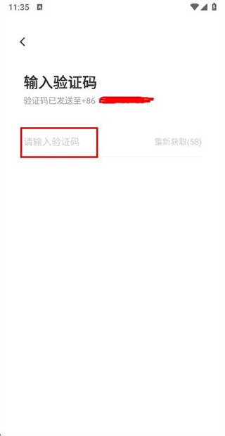 3、在输入短信验证码页面填写收到的验证码,完成账号的登录操作。