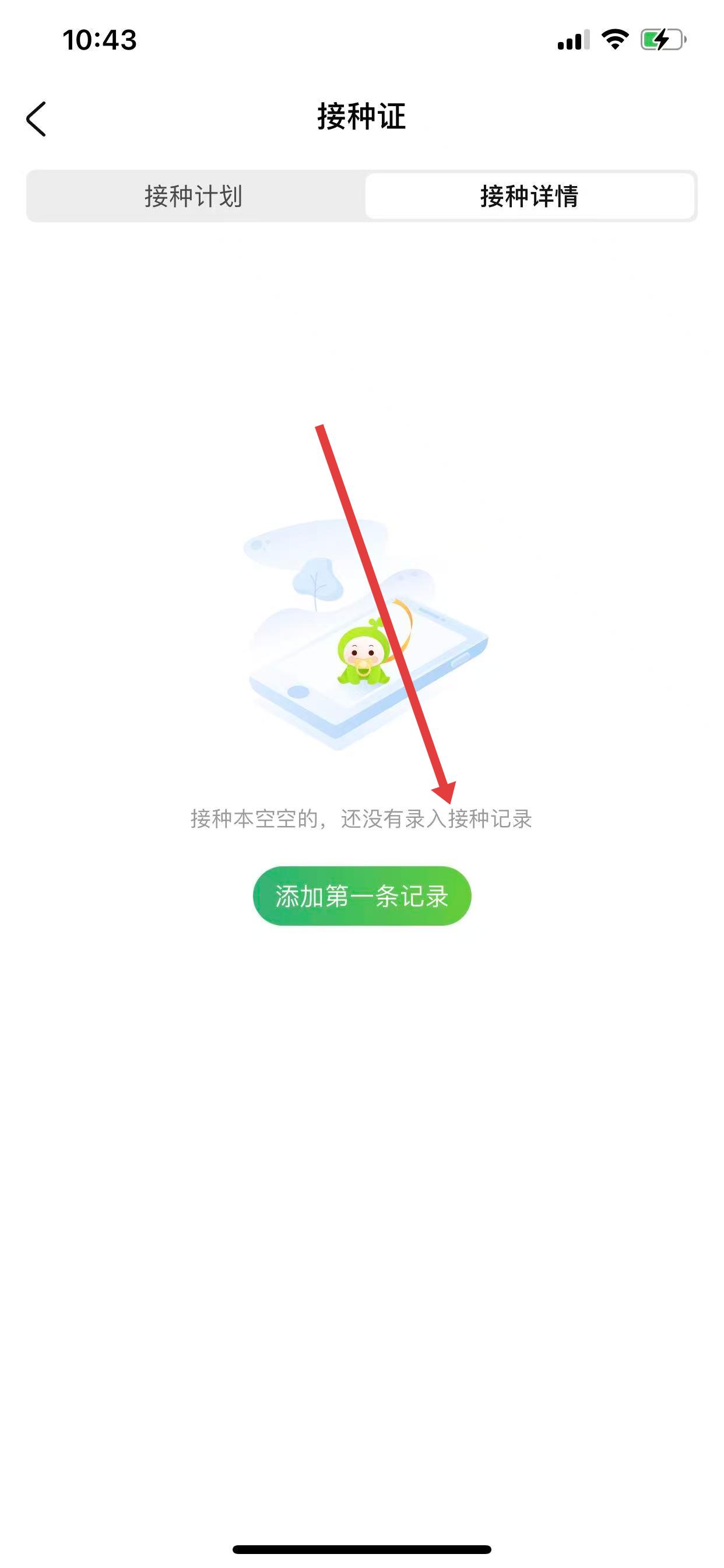2、在接种证页面点击底部的完善接种记录按钮,进入添加接种记录页面。