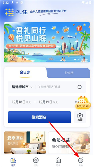 1、在银座酒店app界面,点击我的选项,进入个人中心页面。