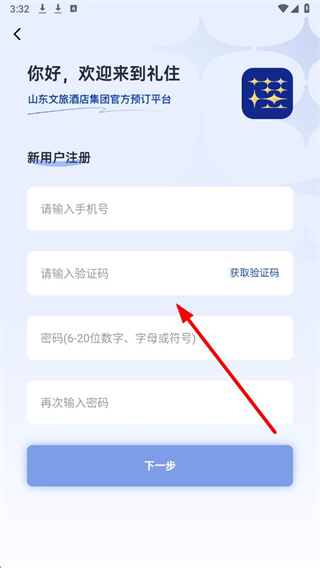 4、在新用户注册页面,依次填写手机号、验证码、密码并再次确认,点击下一步完成账号注册流程。