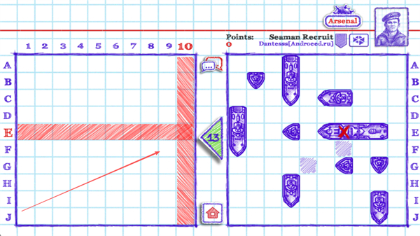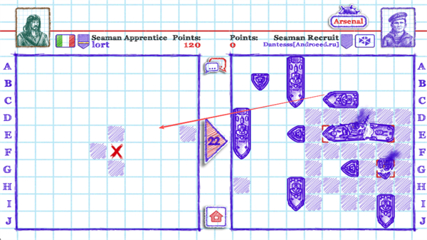 4、持续攻击敌方区域,命中对手舰船后会显示命中标记,推进对战进程。