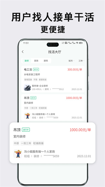 众联宜居服务端最新版是一款能够帮助用户进行装修和家政一站式接单服务的应用程序,它为你提供了一个便捷的平台,方便轻松发布和接收家政服务订单,无论是需要保洁、搬运还是家电维修等家政服务,它都能满足我们的需求,通过软件,还可发布自己的需求,并得到及时响应,我们只需选轻轻一动手指,就能享受到贴心的家政服务,不再需要费时费力地寻找可靠的家政服务员,快来体验下载它,使我们的家政生活变得简单、高效。