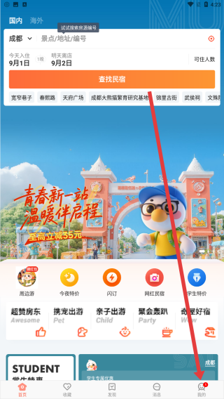 1、在进入到木鸟民宿主页中时,可以点击右下角的我的按钮,进入我的主页。