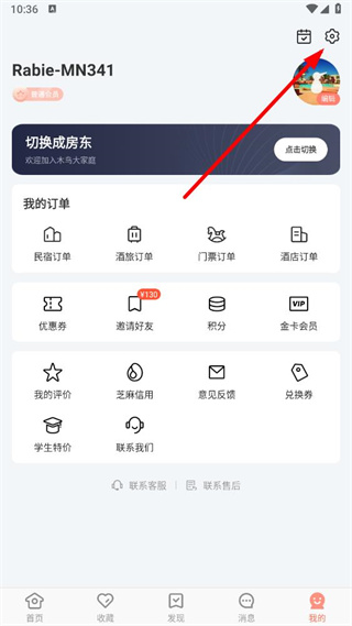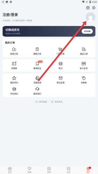 1、打开木鸟民宿app,点击底部导航栏中的我的选项。
