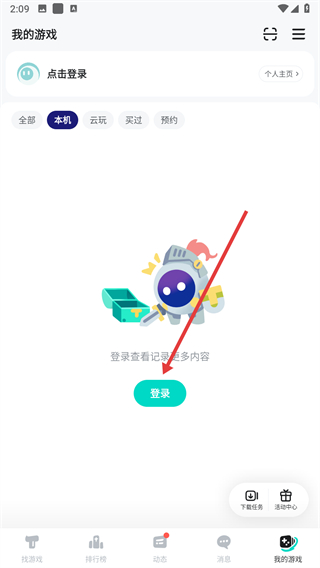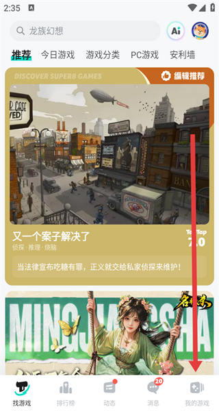 1、打开Taptap,在首页点击底部导航栏的“我的游戏”选项,进入个人游戏管理页面。