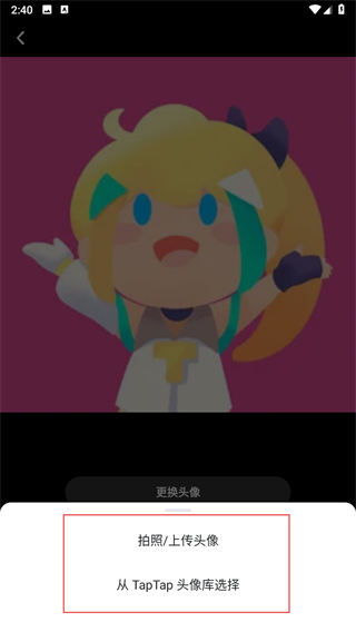 4、选择拍照或上传头像或从TapTap头像库选择的方式,完成头像修改。