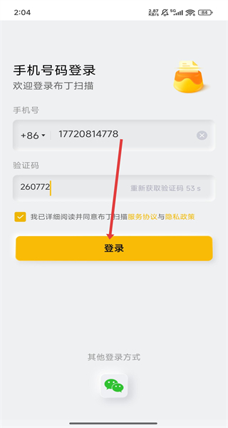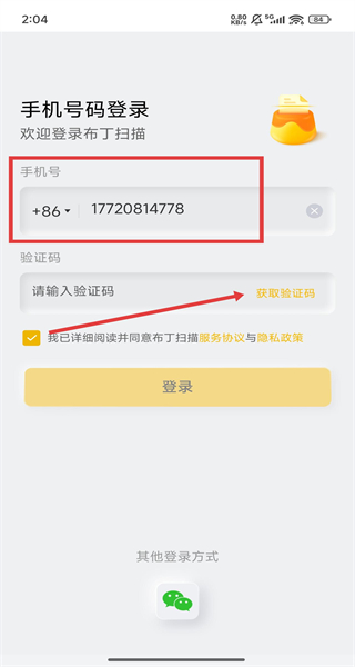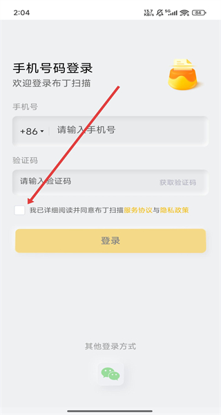 2、在进入到手机号码登录界面,在开始登录前,需先点击勾选同意按钮后进行登录操作。