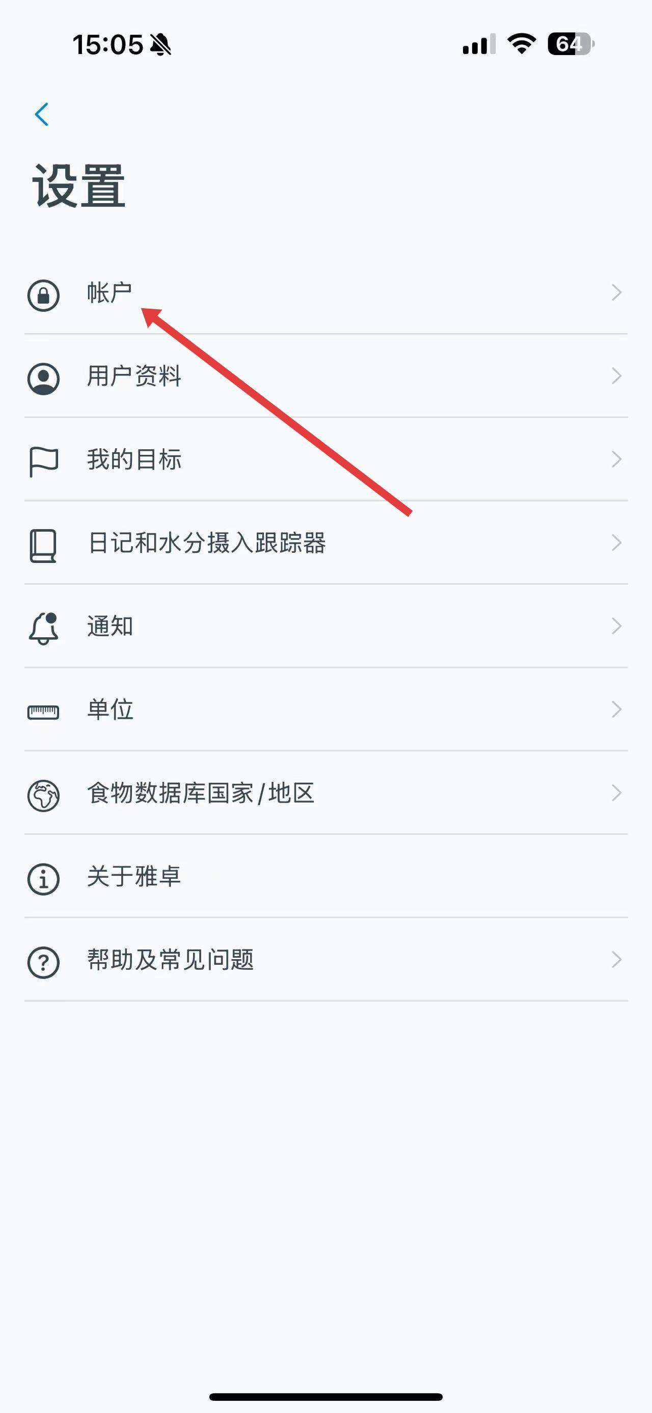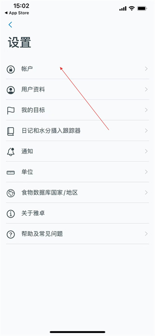 3、 在设置页面点击帐户选项,进入帐户页面。