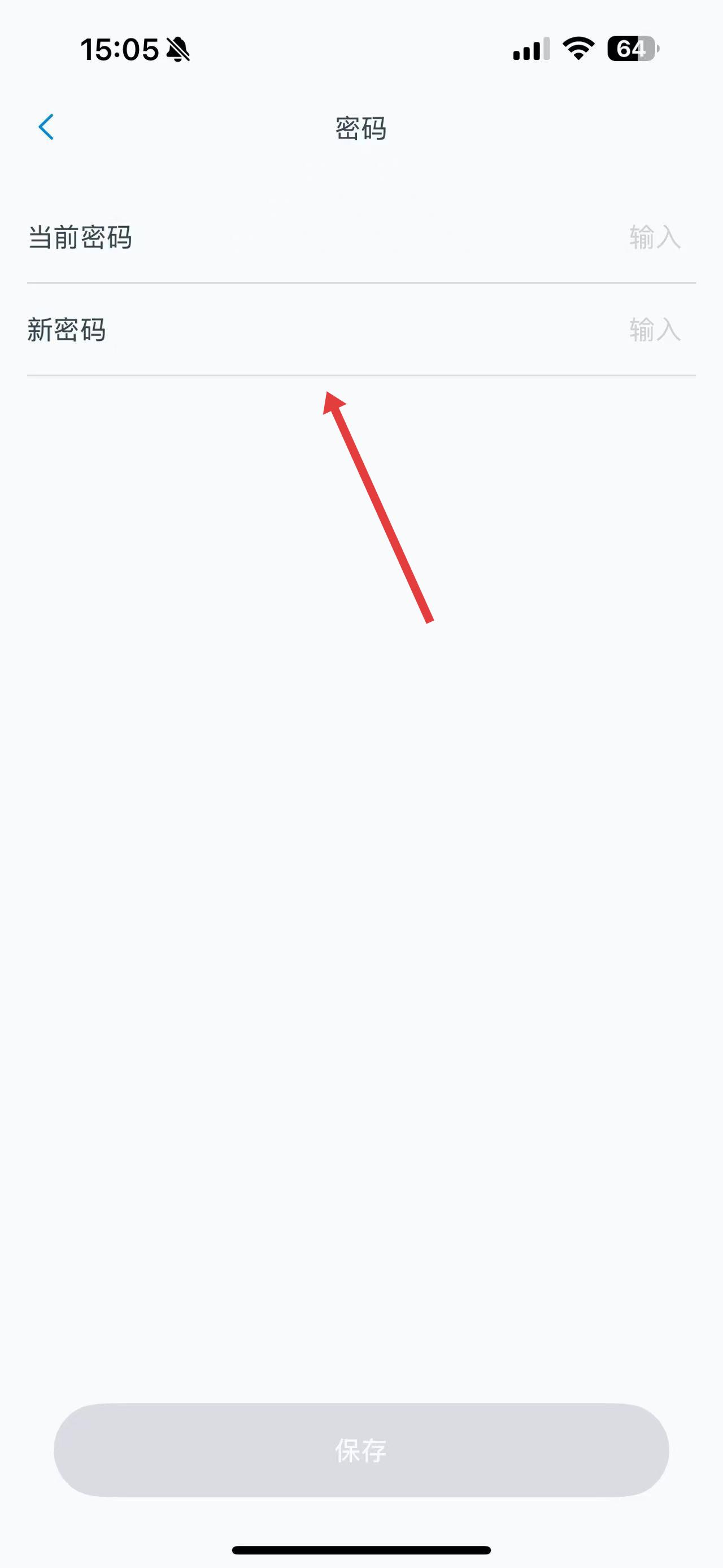 5、 在密码修改页面输入当前密码和新密码,点击保存完成密码修改。