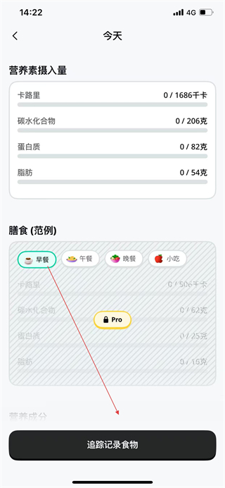 2、在该页面点击追踪记录食物,进入对应餐食的记录页面。