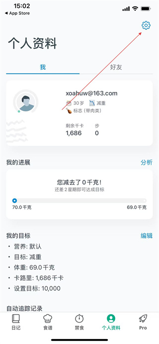 2、 在个人资料页面点击右上角的设置图标,进入设置页面。