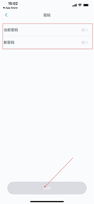4、在密码设置页面,输入当前密码,再输入想要设置的新密码,之后点击保存按钮,即可完成密码设置。