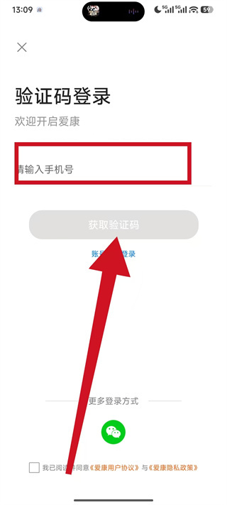 4、若选验证码登录,在页面输入手机号,点击获取验证,