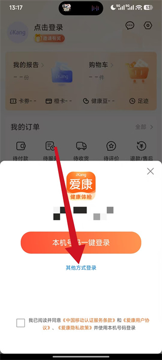 2、在个人页面上方点击点击登录,弹出登录方式选择弹窗。
