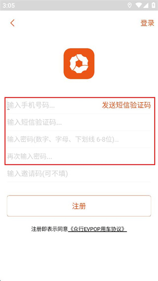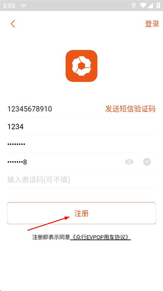4、确认信息填写完整后点击注册按钮,完成众行EVPOP账号的注册操作。