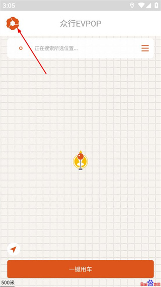 1、打开众行EVPOP软件后点击左上角图标,进入账号相关页面。