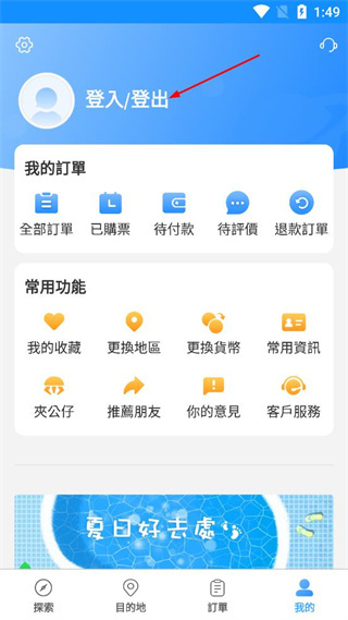 2、在我的页面中,找到位于页面上方的登入/登出按钮,点击该按钮进入登录界面。