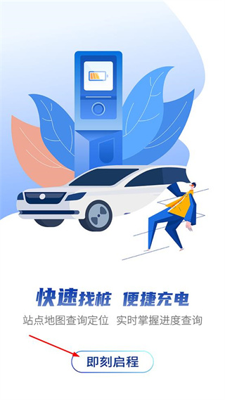 1、打开东风出行软件,找到界面中的即刻启程按钮,点击该按钮进入主功能页面。