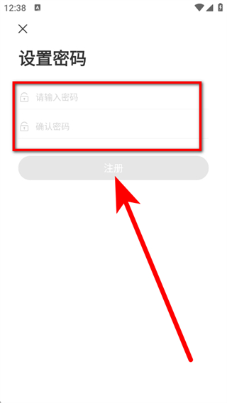 5、在设置密码页面,设置密码,点击注册,完成账号注册。