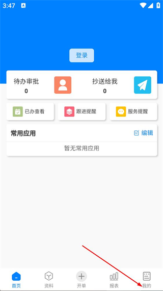 2、在应用首页,点击底部我的选项,进入个人中心页面。