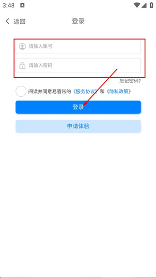 4、在登录界面,填写账号和密码,点击登录,完成账号登录。