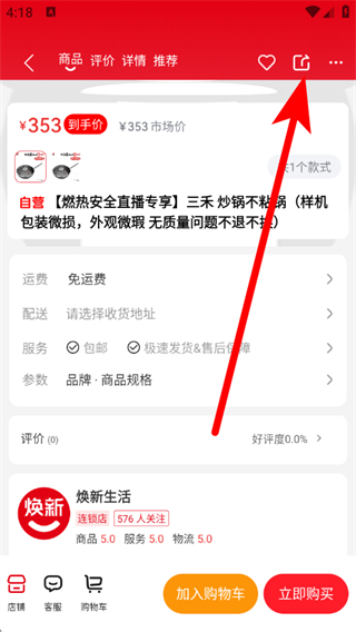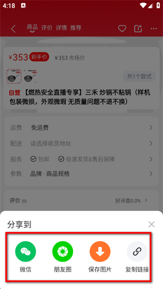 3、在商品详情页面,点击顶部分享,弹出分享到弹窗。