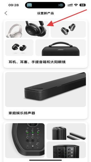 在bose应用程序中,在“get connected”(进行连接)屏幕上选择您的产品后,会有“select an accessory”(选择配件)弹出窗口出现