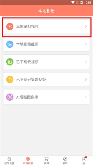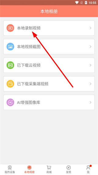 2、在本地相册页面,在列表找到本地录制视频选项。