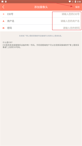 3、输入CID、用户名、密码后,点击保存即可添加成功。