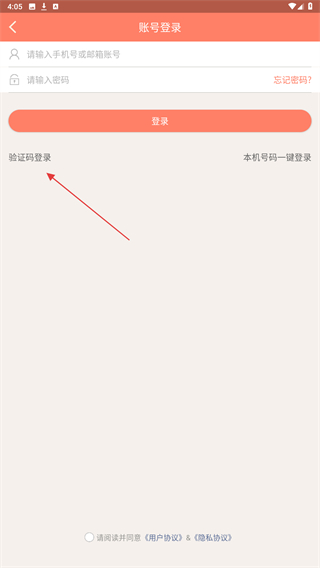 2、在登录页面中,点击验证码登录选项,切换到验证码登录的信息输入界面。