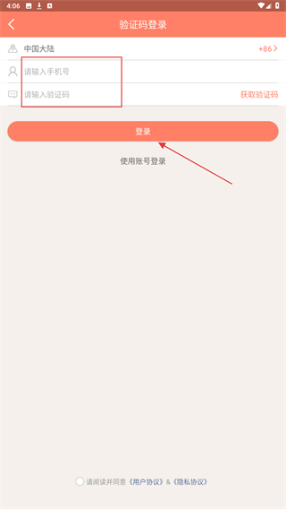 3、在验证码登录界面,输入要绑定的手机号、验证码,再点击登录即可。